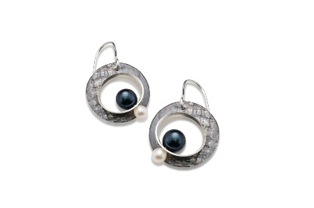 V-1 Earrings $46.00 Blackened Sterling w/ fresh water pearls